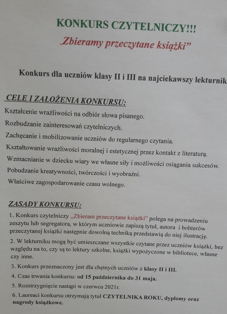 Z tej okazji przypominamy uczniom klasy II i III o konkursie bibliotecznym