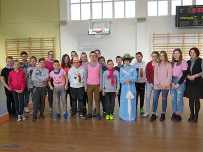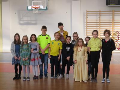Chętni uczniowie zaprezentowali się w wiosennych przebraniach. Dla każdego przewidziany był słodki upominek ufundowany przez Radę Rodziców.