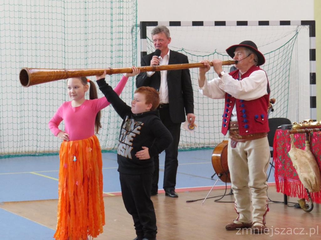 W murach naszej szkoły gościliśmy grupę muzyczną "Wirtuoz" , która zaprezentowała ciakwe i znane utwory na mniej znanych instrumentach. Interesującą osobą był Pan Jacenty Ignatowicz słynny multiintrumentalista z Żywca, uczestnik pierwszej edycji telewizyjnego programu TVN "Mam talent". Z zaciekawieniem słuchaliśmy utworów wykonywanych przez Pana Jacentego na pile, czy na liściu.