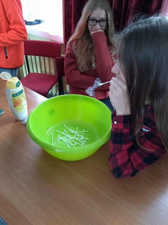 W oczekiwaniu na wyniki konkursu uczniowie oglądali pokazy doświadczeń fizycznych przeprowadzanych przez uczniów Szkoły Podstawowej nr 12 z Gniezna oraz wzięli udział w konkursach z wykorzystaniem multimediów.