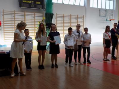 Uczniowie, którzy otrzymali promocję z wyróżnieniem odebrali świadectwa oraz