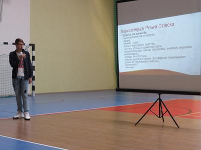 Z okazji tego dnia uczeń klasy VIII - Domink Łukomski przedstawił wszystkim uczniom krótką prezentację o prawach dziecka.