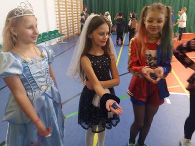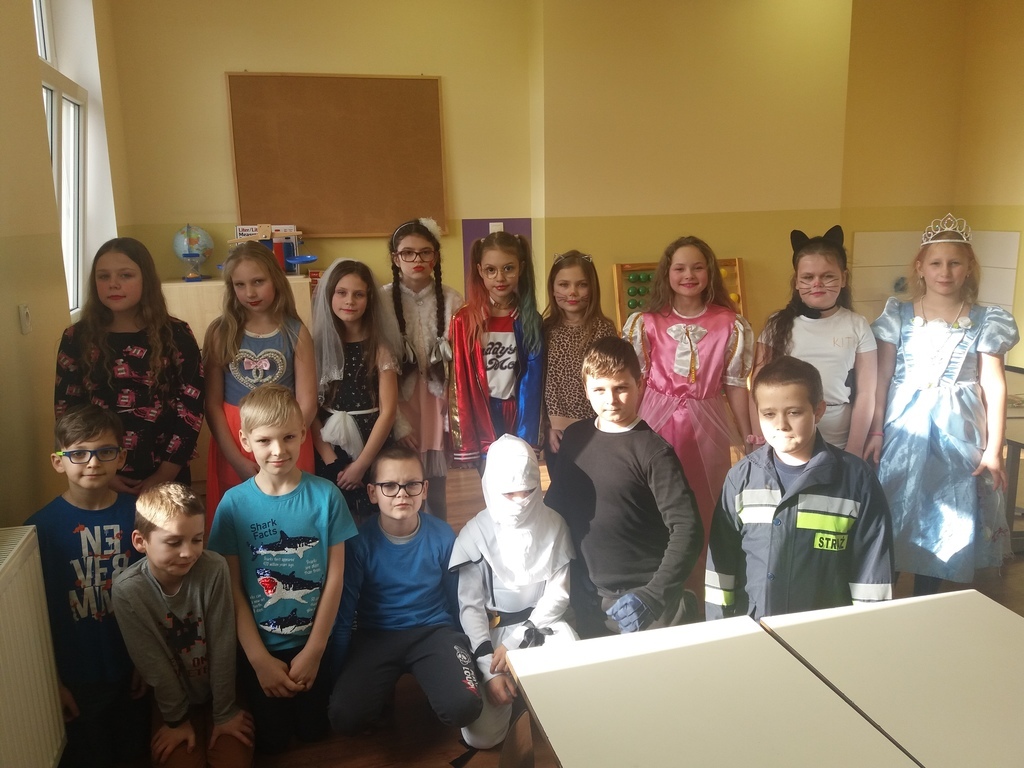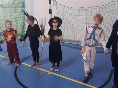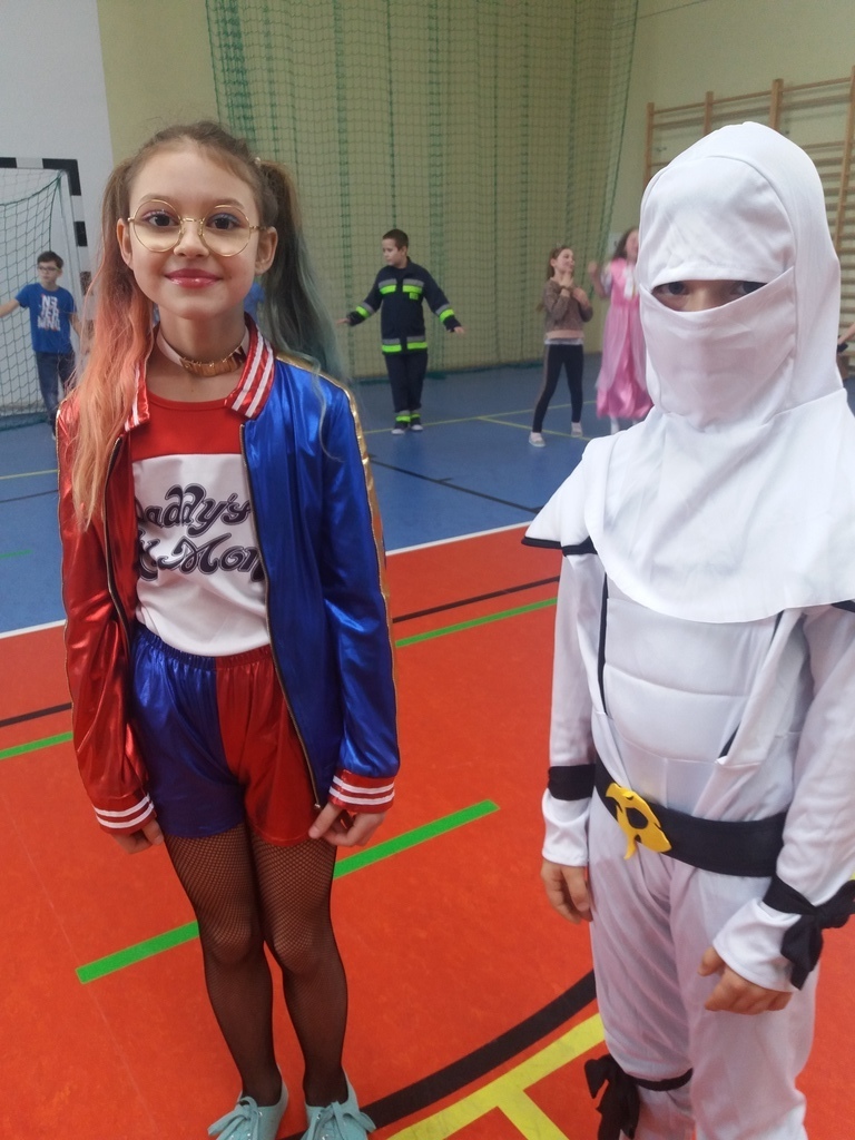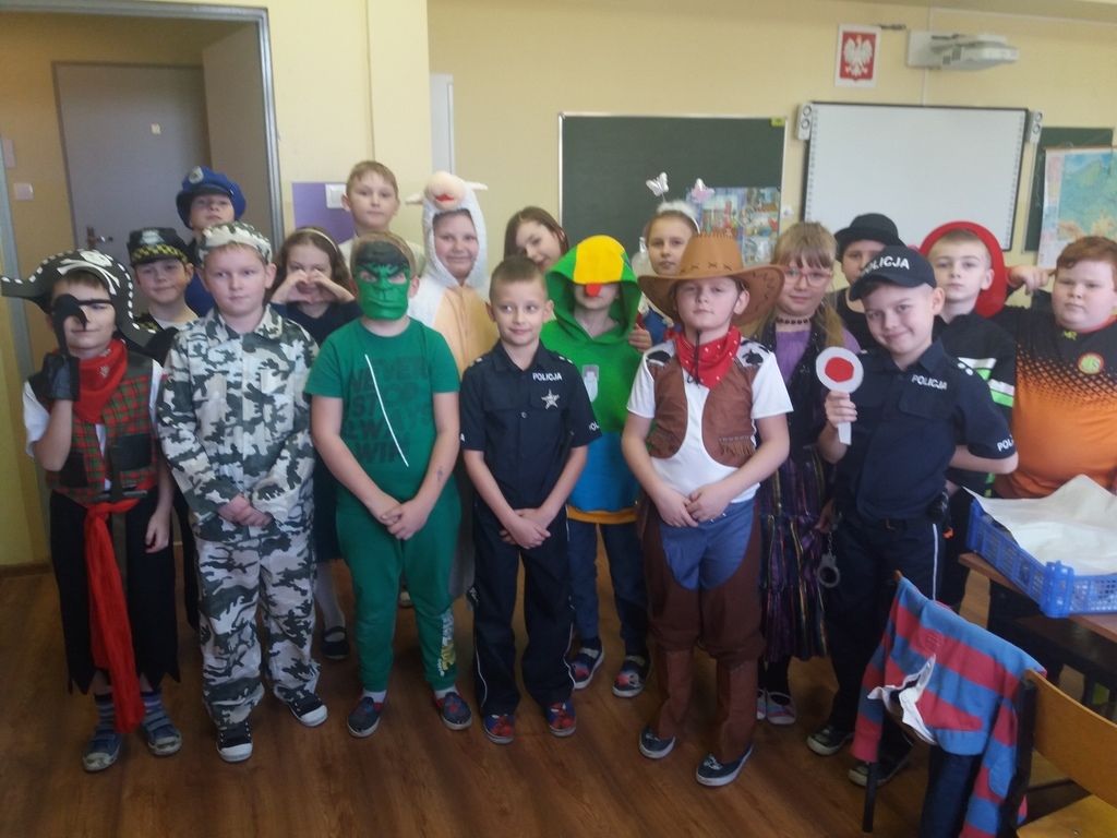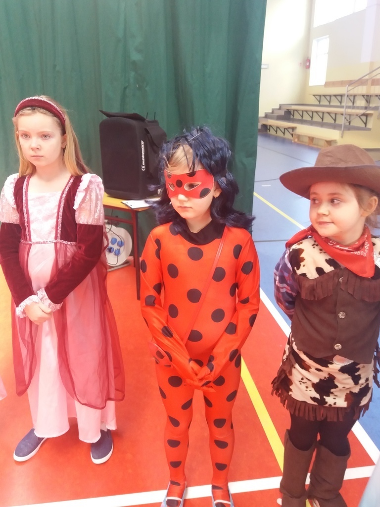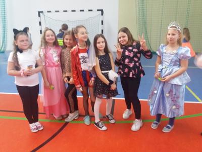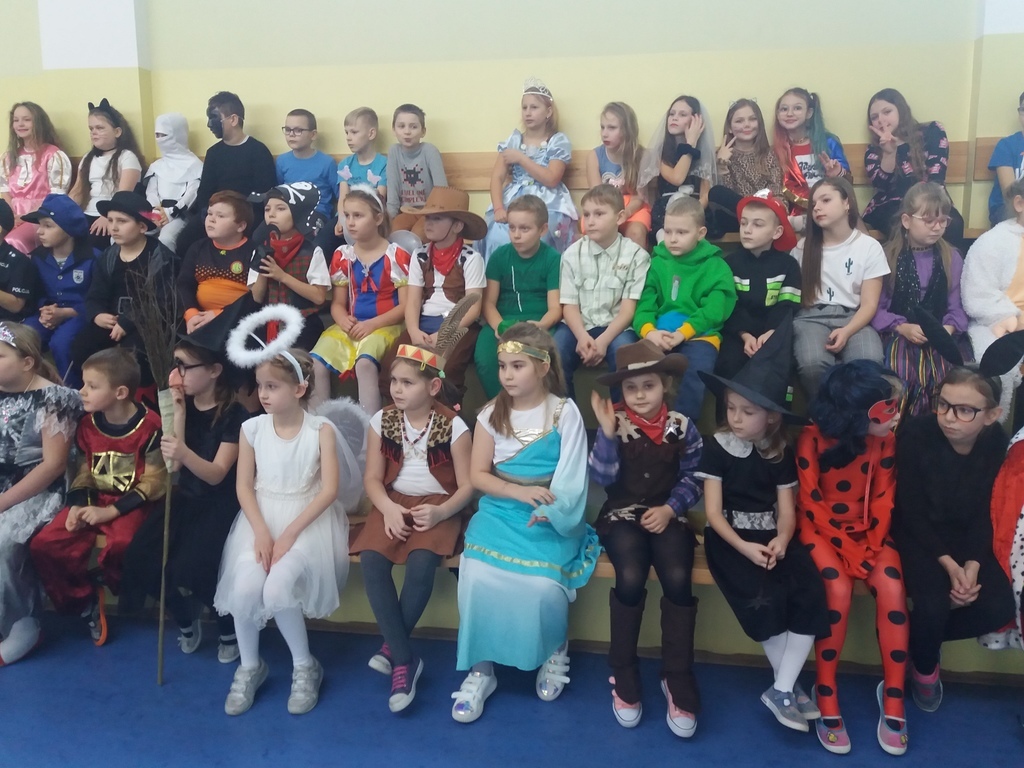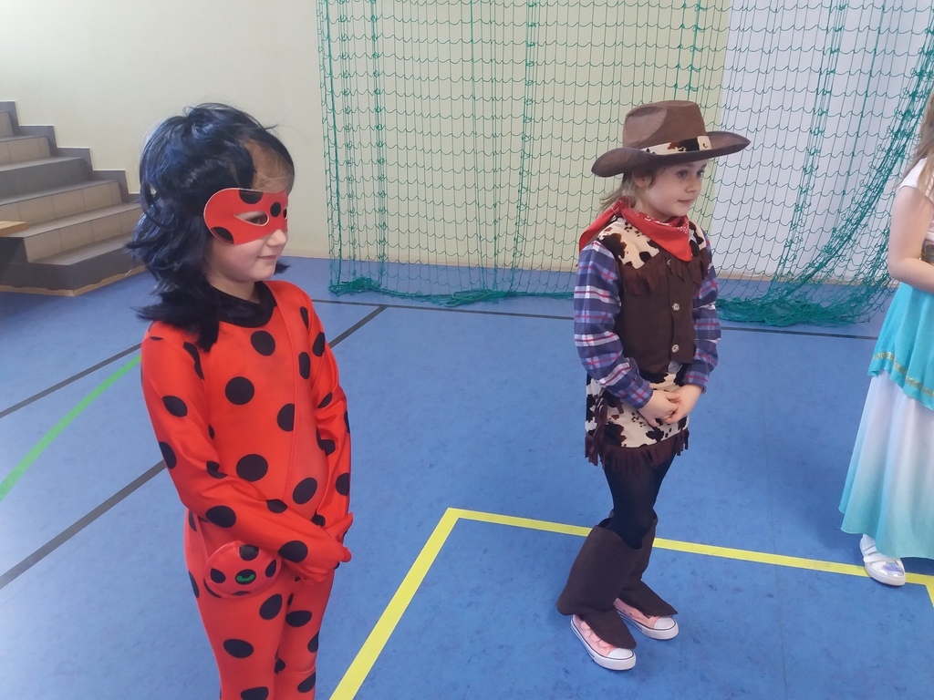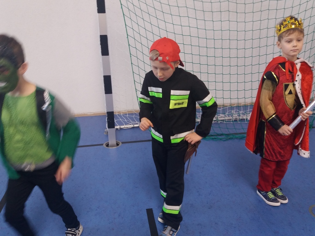 Na sali gimnastycznej naszej szkoły pojawiły się kolorowe postacie. Dzieci przebrane były za bohaterów znanych bajek, można było zobaczyć: wróżki, królewny,biedronki, księżniczki, rycerzy, piratów, policjantów, żołnierzy, Żówie Ninja, Batmany, …nie sposób zliczyć i wymienić tych wszystkich postaci. Na sali podczas pląsów było bardzo kolorowo, wszyscy bawili się wesoło, uśmiech nie znikał z twarzy mimo chwilowego zmęczenia. Kiedy czas zabawy dobiegł końca dzieci z żalem opuszczały salę. Bal umożliwił dzieciom i wychowawcom spędzenie czasu w miłej atmosferze. Wspólna zabawa przyniosła wiele radości naszym wychowankom, a to było głównym celem tego balu.