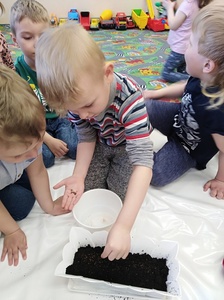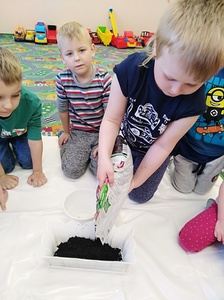 W pierwszych dniach wykonywały doświadczenia z jakiem, segregowały, rysowały i jak ogrodnicy założyły