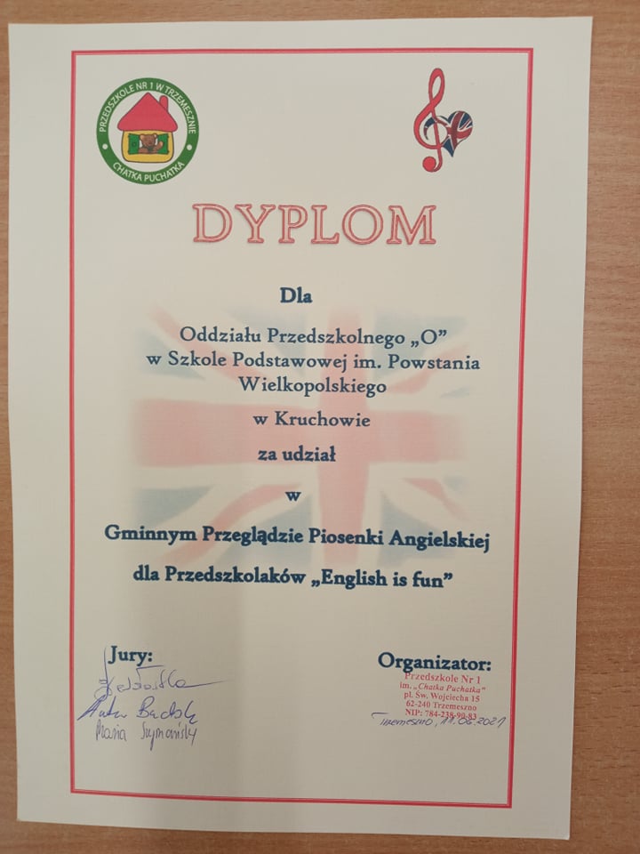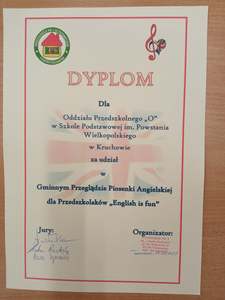 w Gminnym Przeglądzie Piosenki Angielskiej dla Przedszkolaków „ English is fun” ,