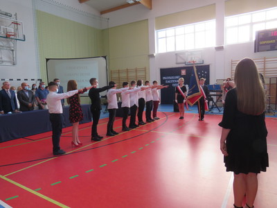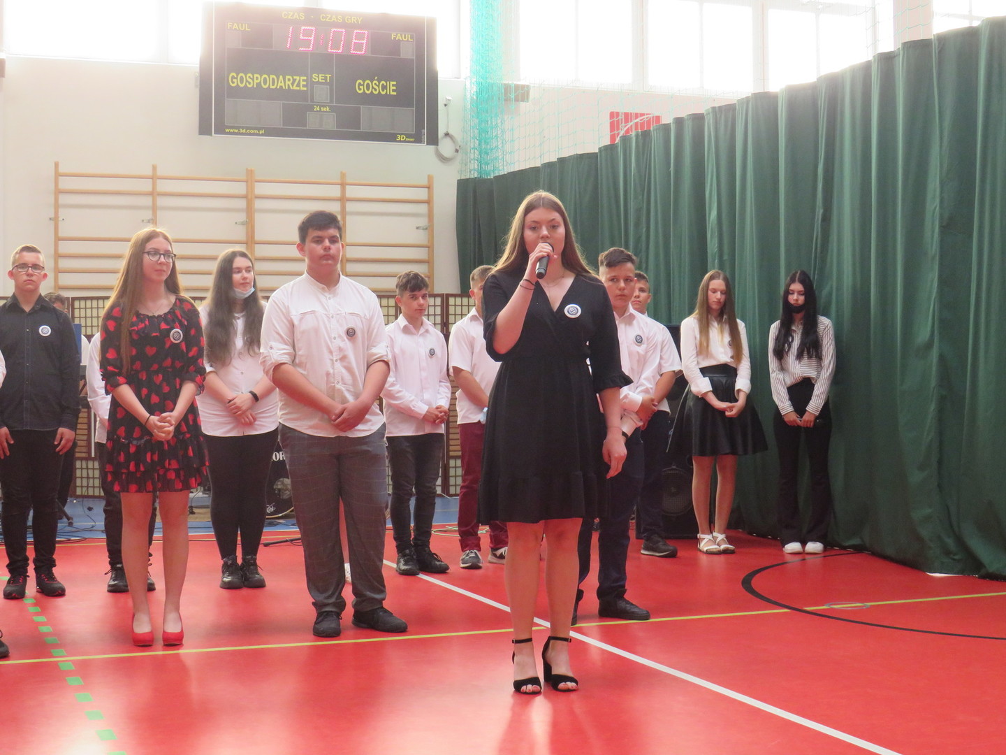 Na zakończenie uroczystości uczniowie klas ósmych zaprezentowali krótki występ artystyczny, w którym