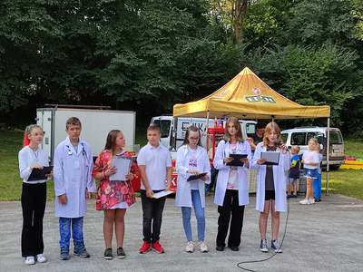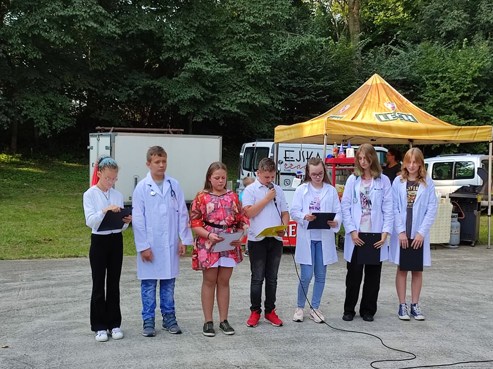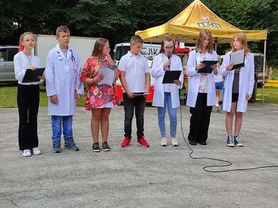 Uczniowie klasy 5 wyrecytowali wiersze o tematyce zdrowotnej i zadawali zgromadzonej widowni