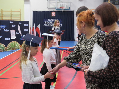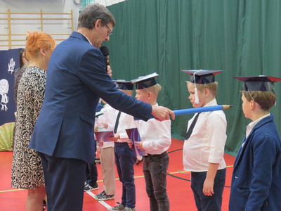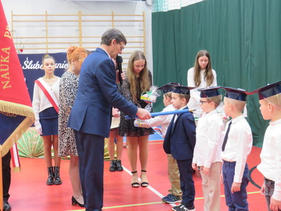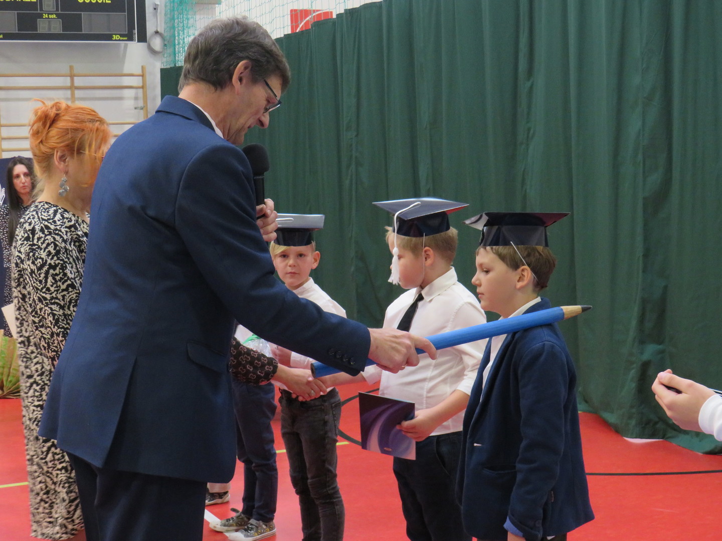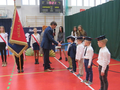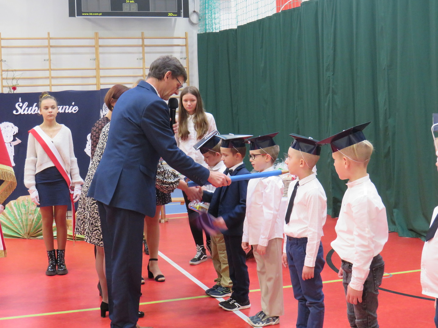 Następne uczniowie złożyli przysięgę i uczestniczyli w ceremonii pasowania ołówkiem, po której już oficjalnie