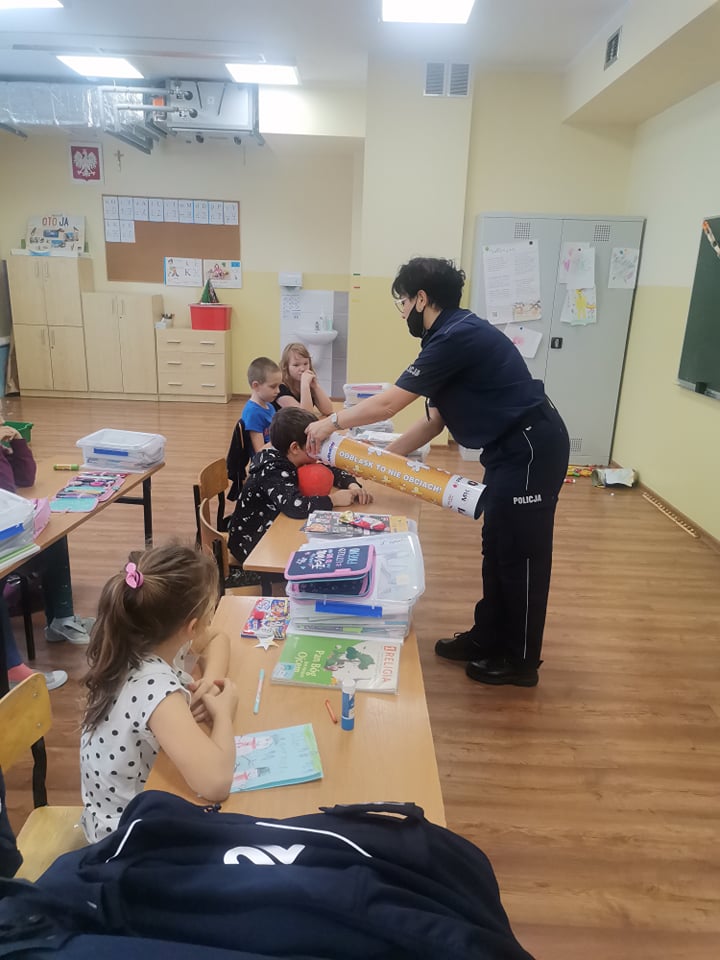 spotkanie z Panią policjantką asp. Donatą Szymalak z Komendy Powiatowej Policji w Gnieźnie.