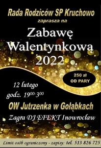 Zabawa Walentynkowa Rada Rodziców serdeczne zaprasza na zabawę walentynkową, która odbędzie się 12 lutego 2022 r. Zdjęcia Zobacz również Świąteczny wystrój sali nr 6 Ważna informacja Informacja Zabawa Walentynkowa Ferie Zimowe 2022 Ferie Zimowe w Domu Kultury w Trzemesznie 12 stycznia 2022 Aktualności Wydrukuj Udostępnij Wyświetlono: 198