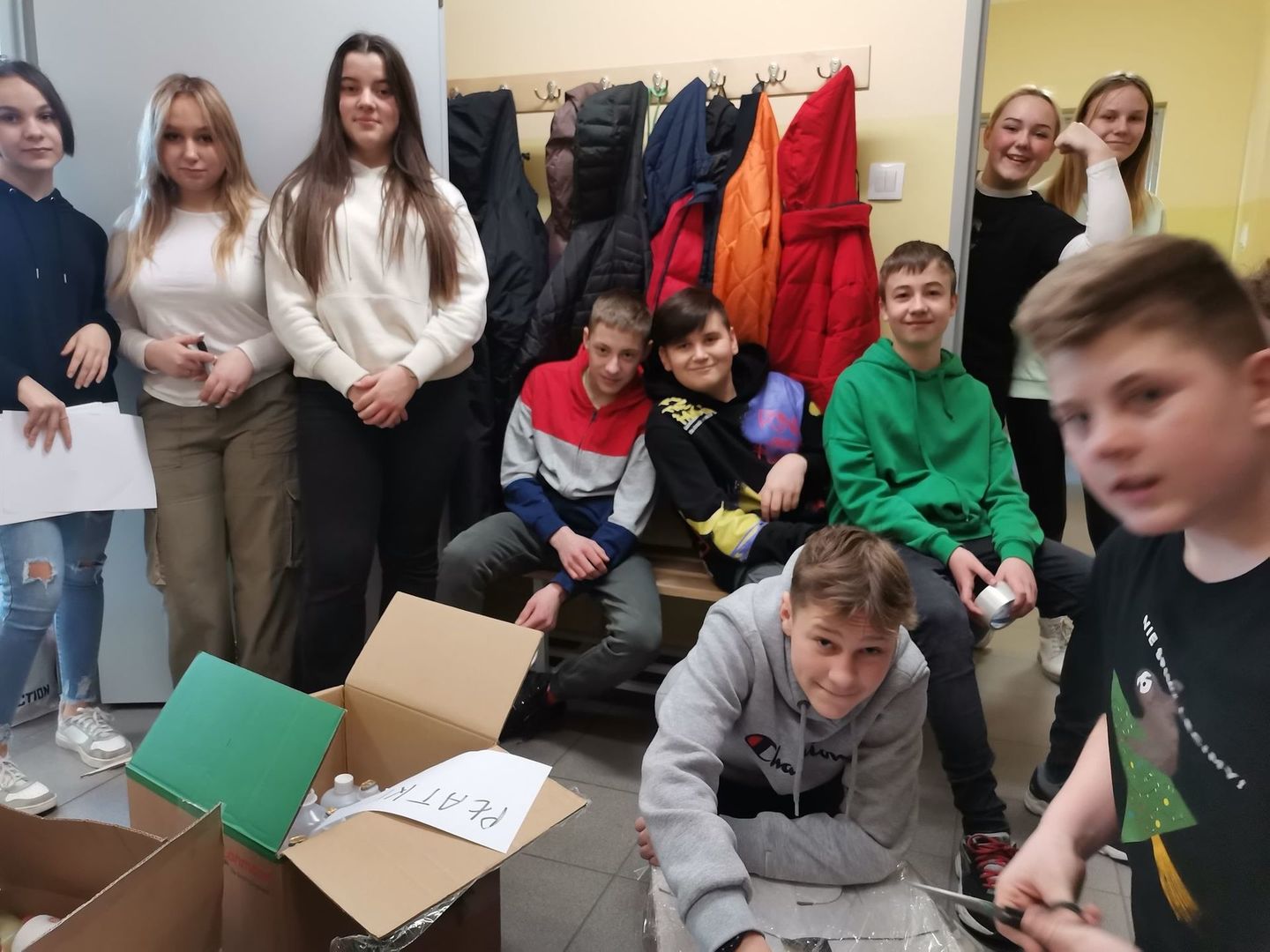 Uczniowie segregowali, pakowali i opisywali artykuły, które dziś wieczorem dotrą do
