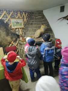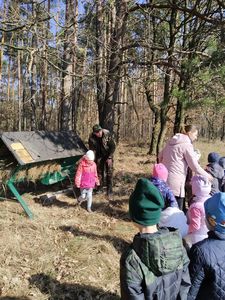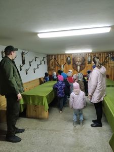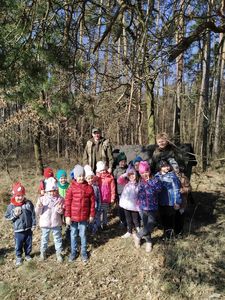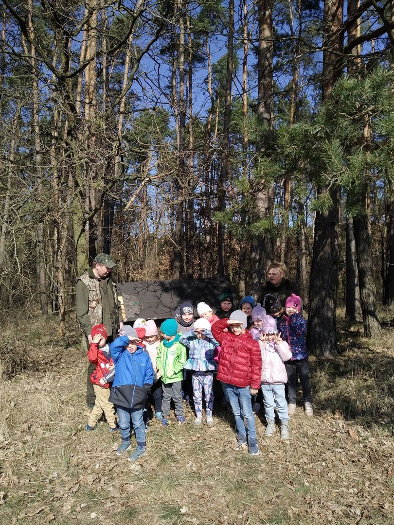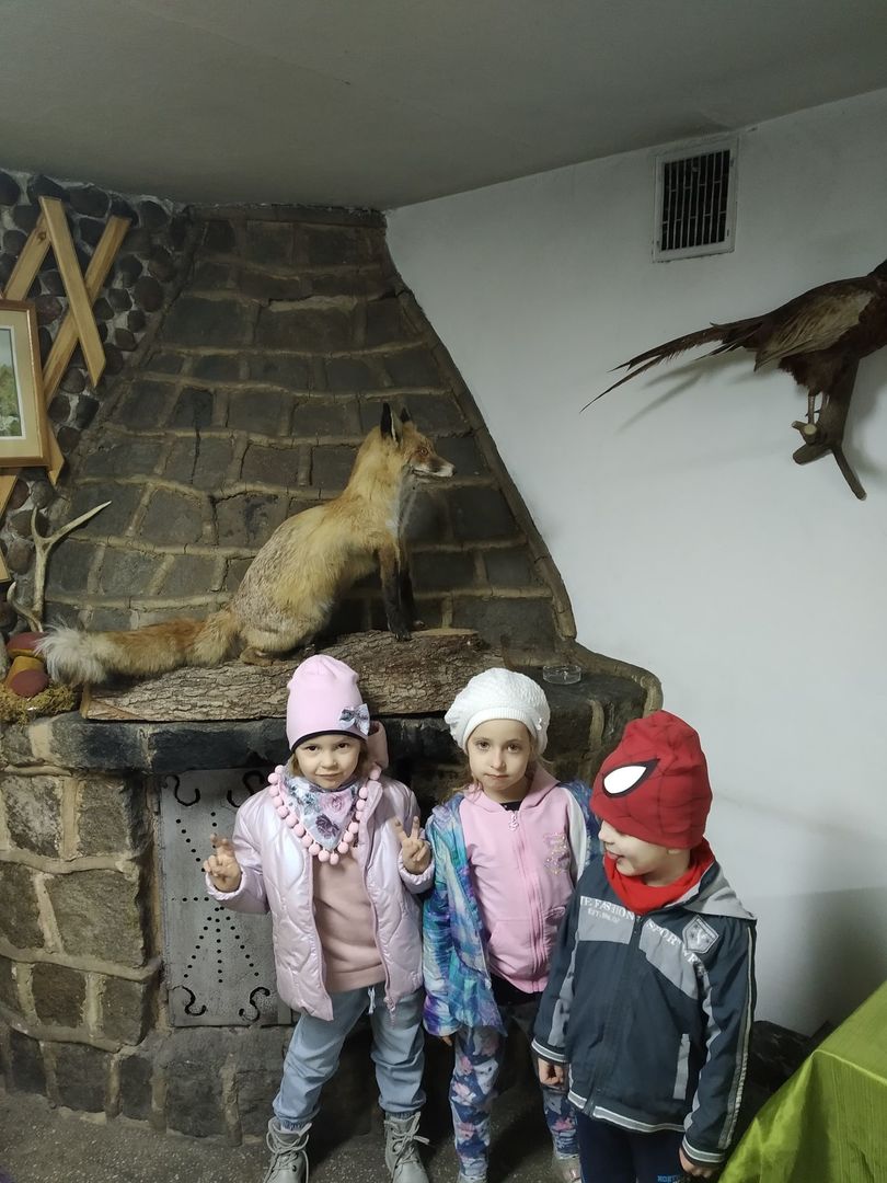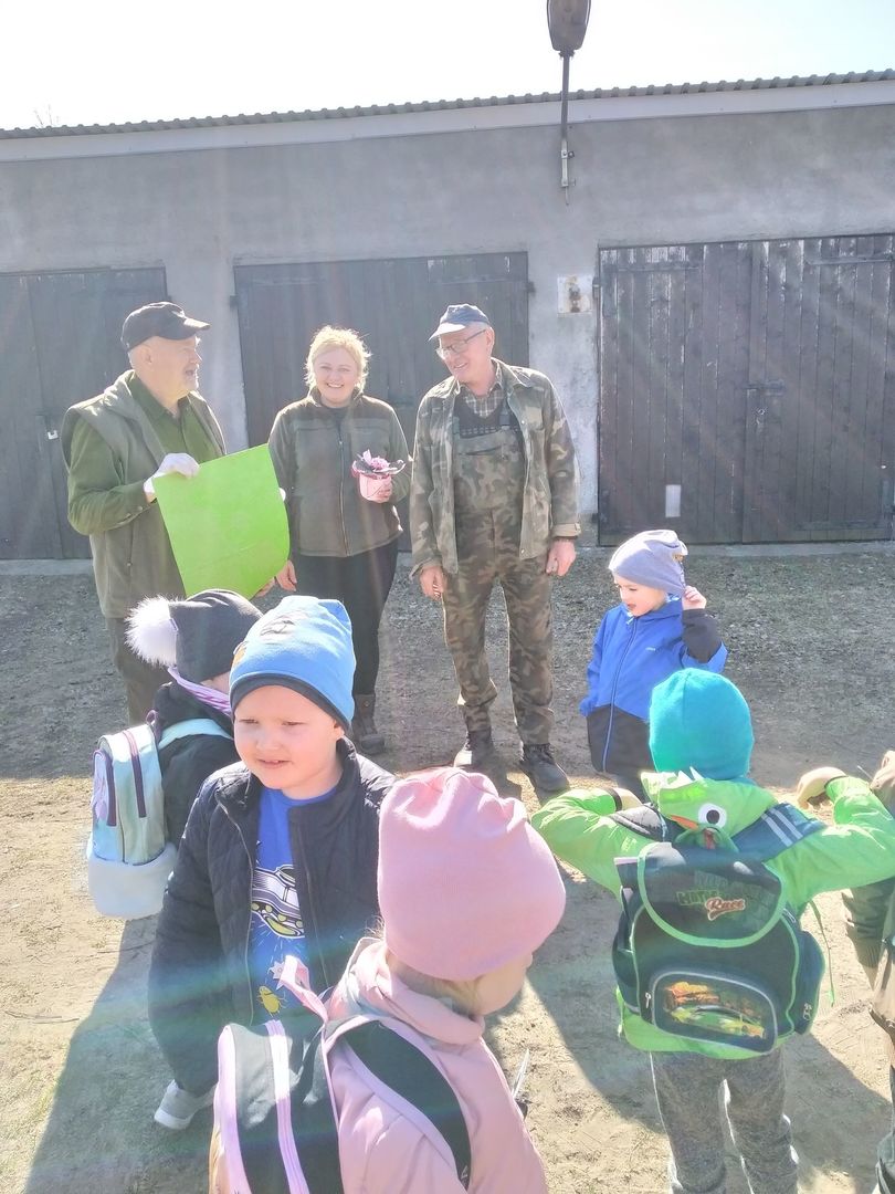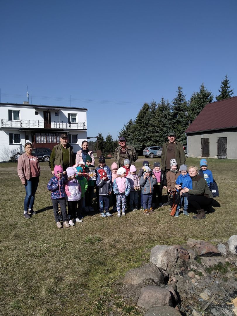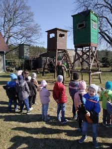 Dzieci z grup przedszkolnych wybrały się na wycieczkę do Koła Łowieckiego "Czapla" w Gołąbkach.