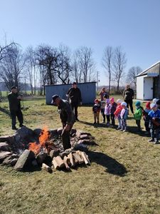 Organizatorzy spotkania przygotowali ognisko, kiełbaski i pączki dla dzieci,