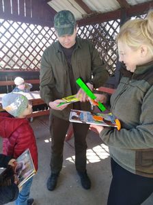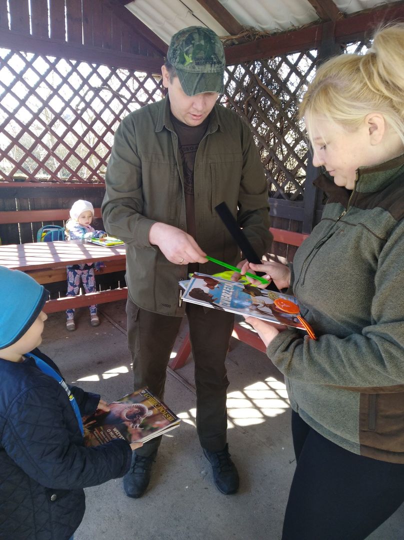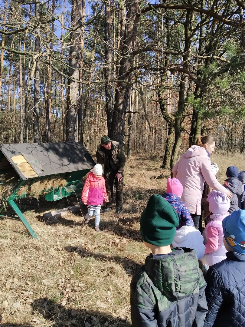 Myśliwi opowiadali o ich zajęciach i zwierzynie, udaliśmy się do pobliskiego paśnika, żeby nakarmić leśnych