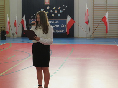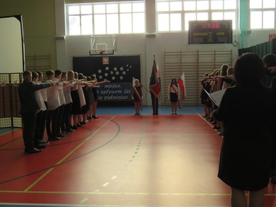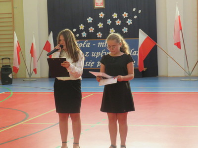 Na zakończenie uroczystości uczniowie klas ósmych zaprezentowali krótki występ artystyczny, w którym