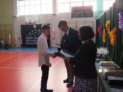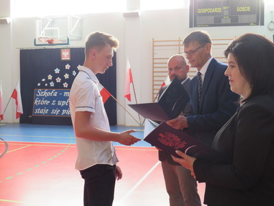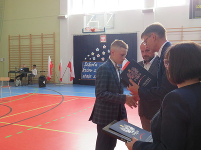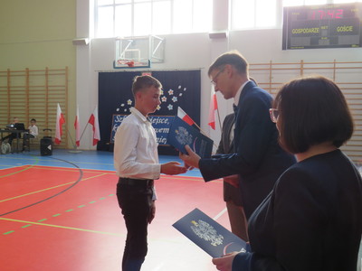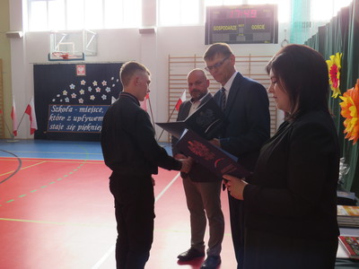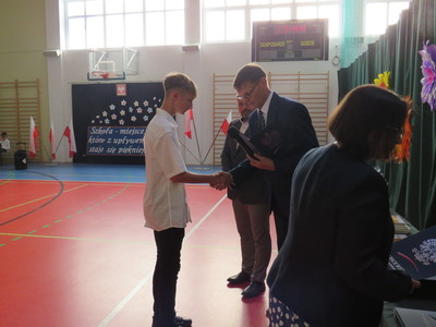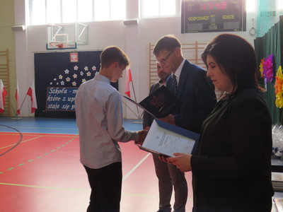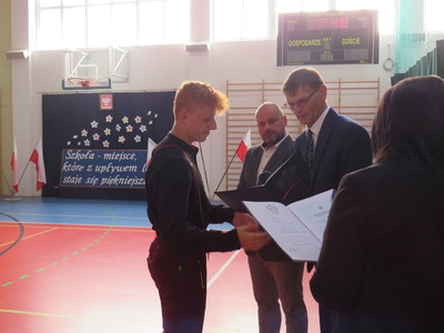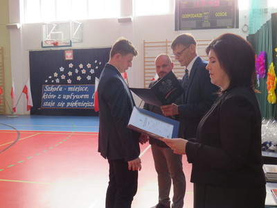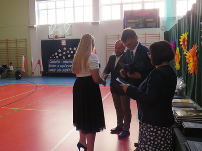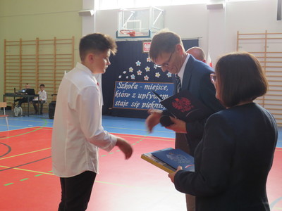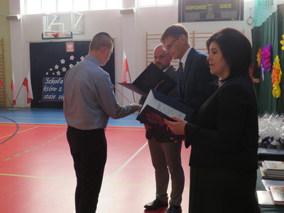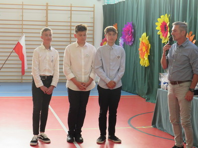 Pan Jacek Siwa- przedstwiciel MKS-u wręczył nagrody dla uczniów naszej szkoły: