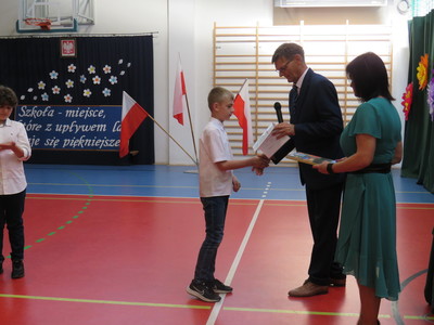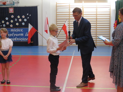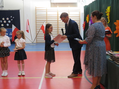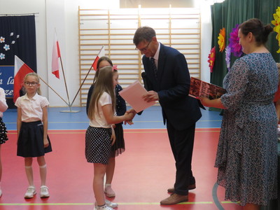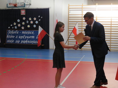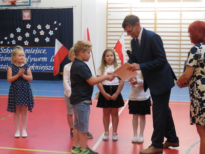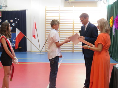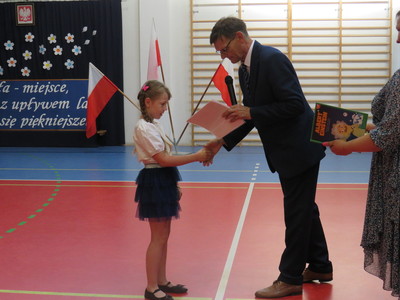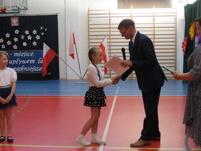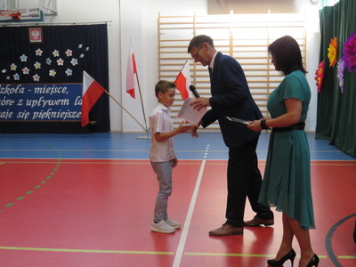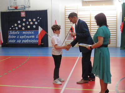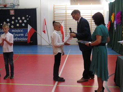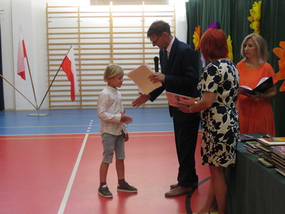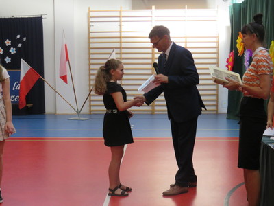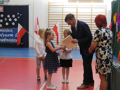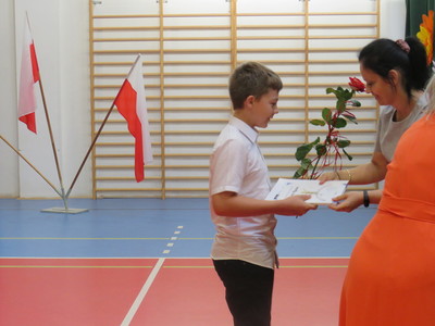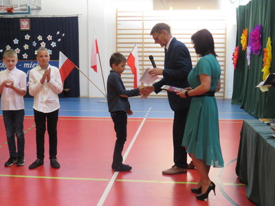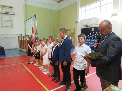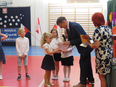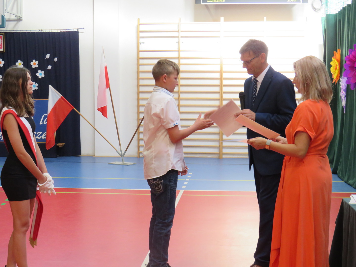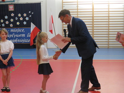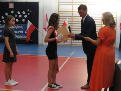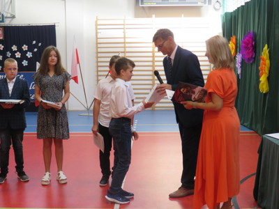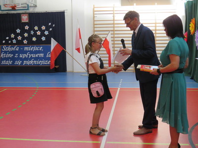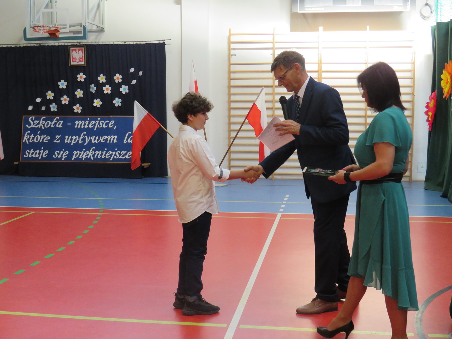 Duża grupa otrzymała świadectwa z biało- czerwonym pasem oraz nagrody książkowe.