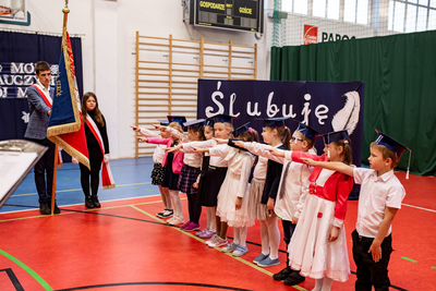 W niezwykle podniosłej atmosferze, przed pocztem sztandarowym pierwszoklasiści ślubowali być dobrymi