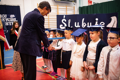 Na zakończenie dyrektor życzył najmłodszym uczniom wielu sukcesów w edukacji szkolnej .