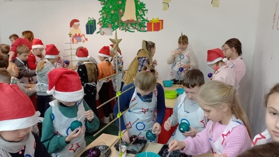 W ramach mikołajkowych atrakcji 06.12.2022r klasa 1, 2 i 3 odwiedziła Fabrykę bombek