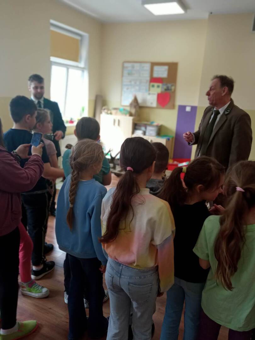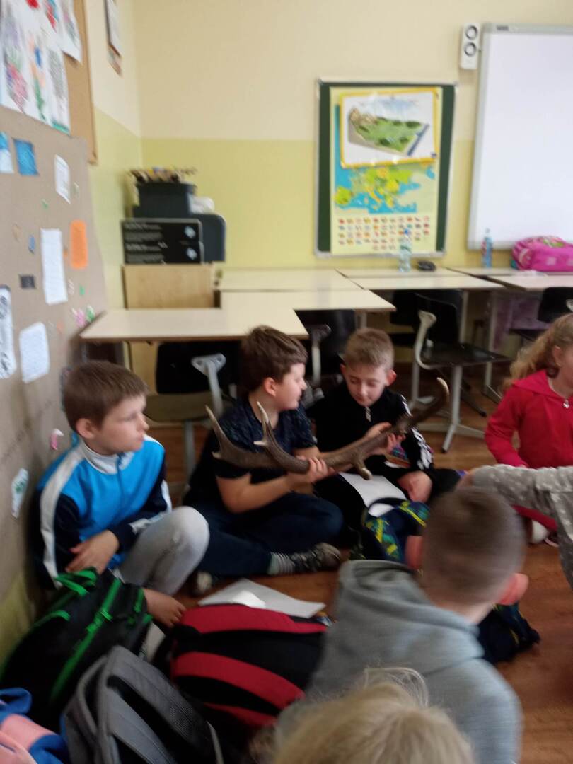 W piątek 14 kwietnia klasa II i III miały okazję spotkać się z panem myśliwym i panem leśniczym.