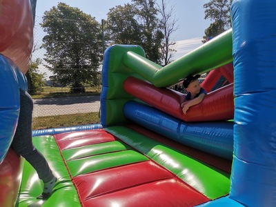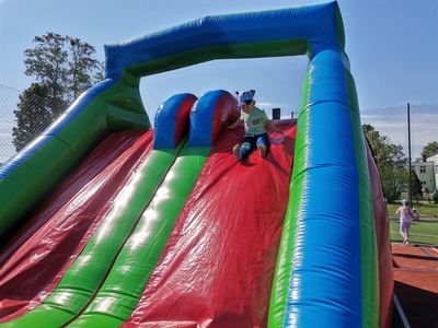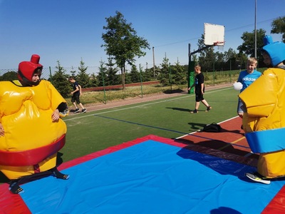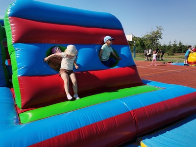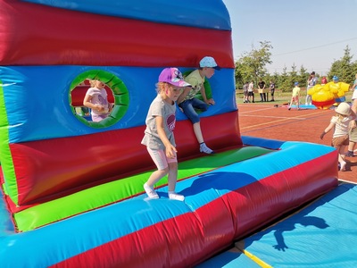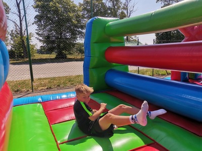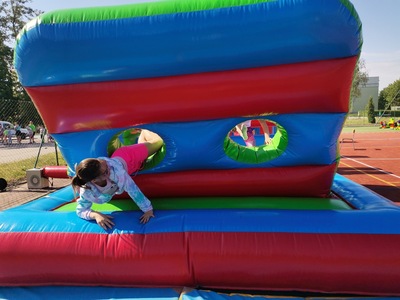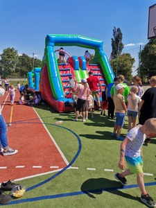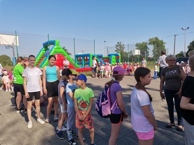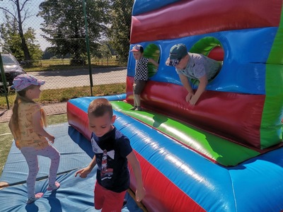 Ogromnym zainteresowaniem cieszył się dmuchaniec, do którego w kolejce co chwila ustawiało się wielu chętnych.