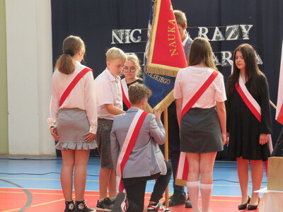 Podziękowania za reprezentowanie szkoły w poczcie sztandarowym otrzymali: