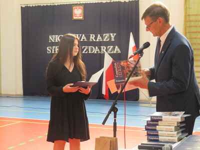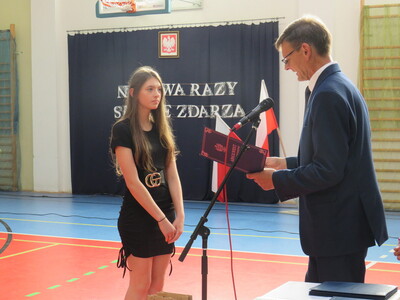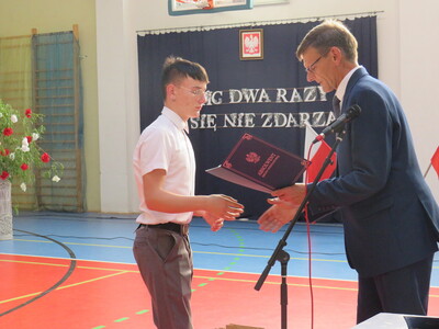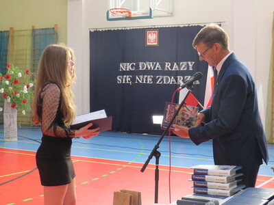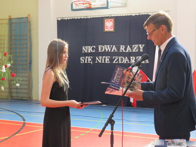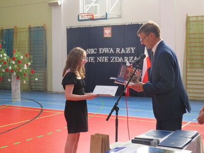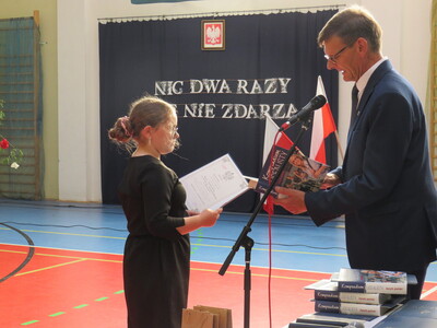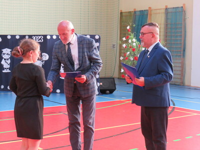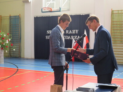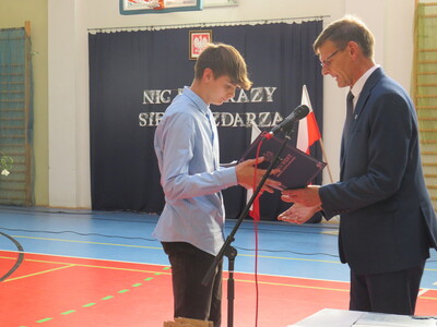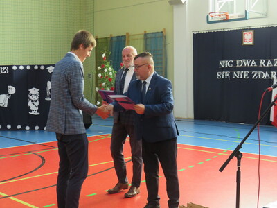 Pan Tadeusz Pawlak- radny RM w Trzemesznie wręczył nagrody dla uczniów naszej szkoły: