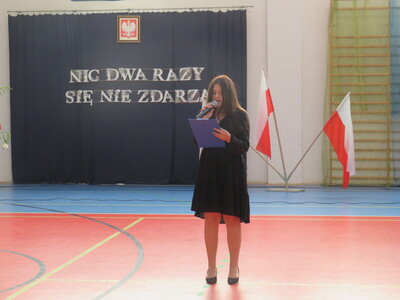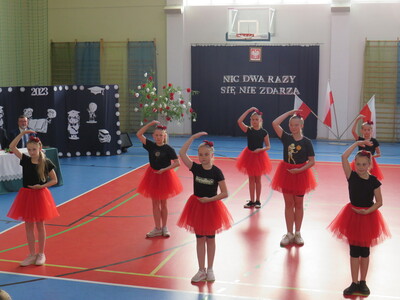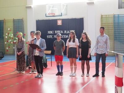 Na zakończenie uroczystości uczniowie klas ósmych zaprezentowali krótki występ artystyczny, w którym