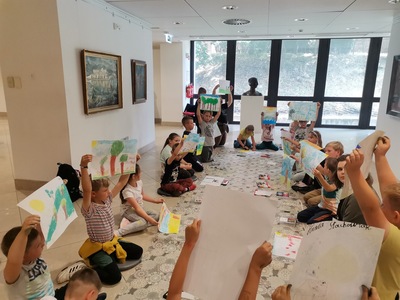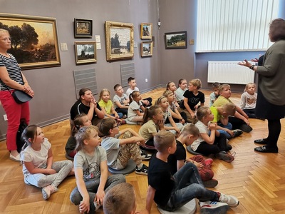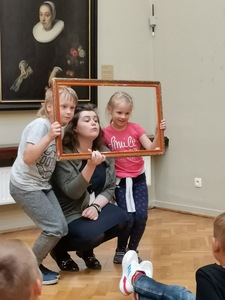 Dzieci miały za zadanie odszukać obraz pasujący do danych wskazówek oraz poznały co to jest pejzaż, portret czy martwa natura.
