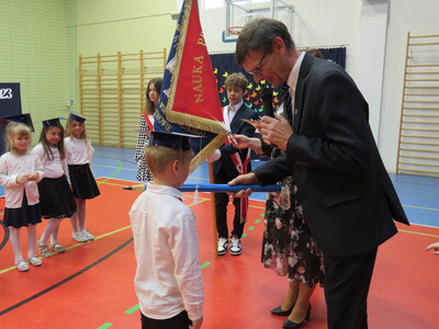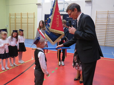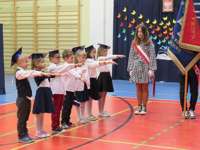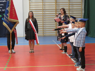 Następne uczniowie złożyli przysięgę i uczestniczyli w ceremonii pasowania ołówkiem, po której już