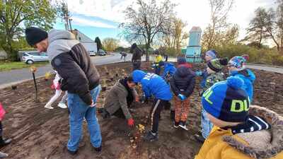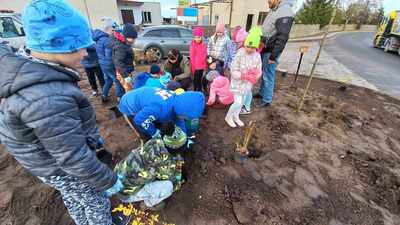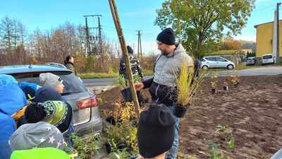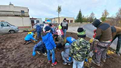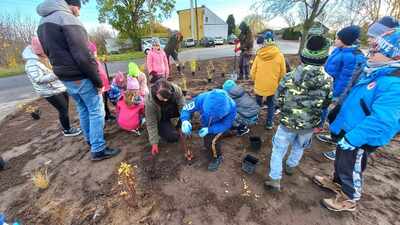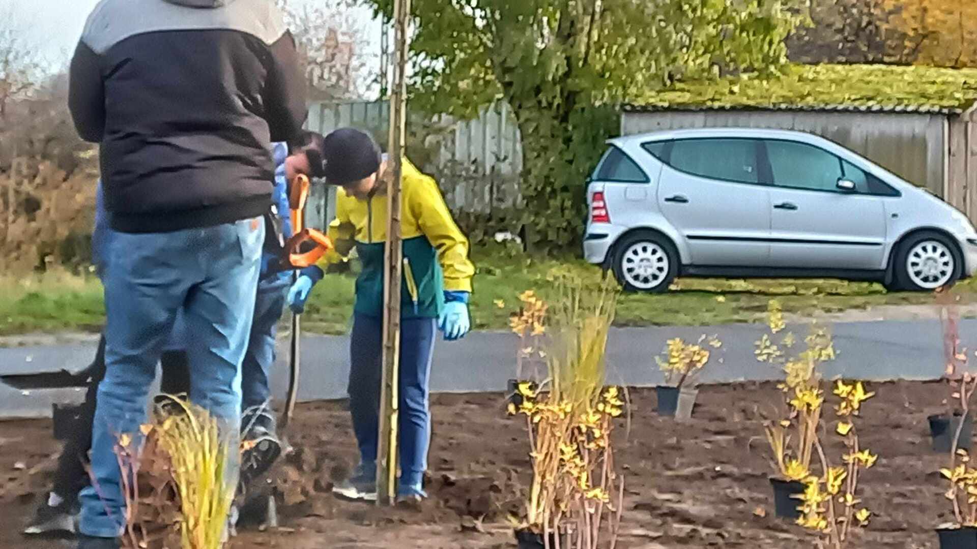 W dniu 9.11.2023 r. uczniowie naszej szkoły z wielkim zaangażowaniem przystąpili do sadzenia drzewek, krzewów i traw ozdobnych.