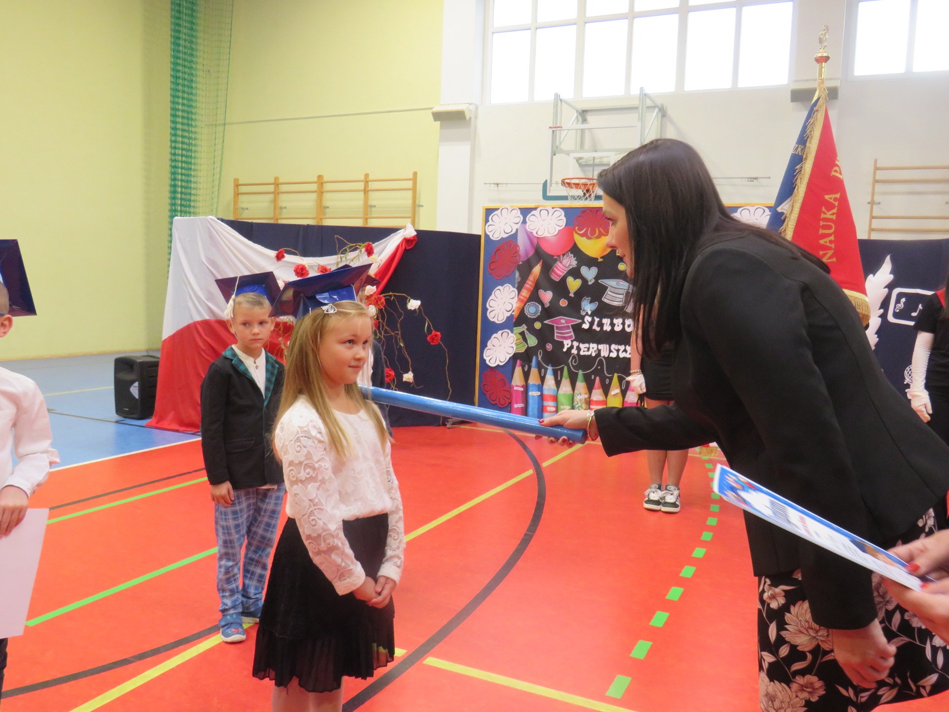 W niezwykle podniosłej atmosferze, przed pocztem sztandarowym, pierwszacy ślubowali być dobrymi uczniami i Polakami,