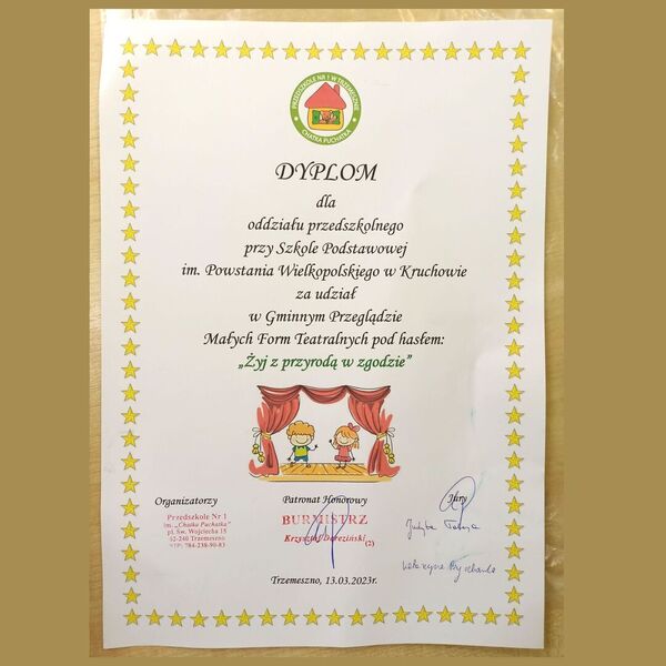 13 marca 2023 Aktualności Żyj z przyrodą w zgodzie 13 marca w Przedszkolu Nr 1 im. " Chatka Puchatka" w Trzemesznie odbył się Gminny Przegląd Małych Form Teatralnych pod hasłem: " Żyj z przyrodą w zgodzie". Wzięły w nim udział dzieci z naszego Oddziału... Czytaj więcej