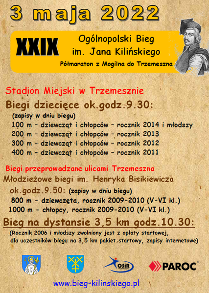 30 marca 2022 Aktualności Biegi Dziecięce i Młodzieżowe im. Henryka Bisikiewicza OSiR w Trzemesznie zapraszama do udziału uczniów szkół podstawowych w Biegach Dziecięcych i Młodzieżowych im. Henryka Bisikiewicza, zaplanowanych na dzień 3 maja. Biegi odbędą... Czytaj więcej