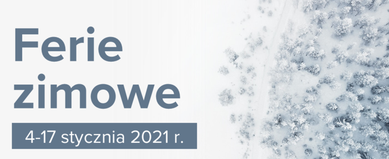 03 grudnia 2020 Aktualności Ferie zimowe W tym roku szkolnym ferie zimowe dla uczniów z całego kraju odbędą się w jednym terminie i potrwają od 4 do 17 stycznia 2021 r. Czytaj więcej